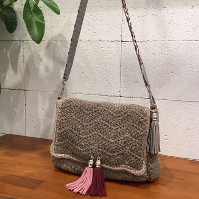 丁寧に編み込まれたニットとレザー